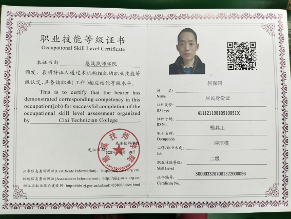 事情要從何保國(guó)對(duì)技能提升的執(zhí)著說(shuō)起。作為模具部的骨干技工,何保國(guó)始終深知“技多不壓身”的道理,在日常工作中不僅認(rèn)真鉆研業(yè)務(wù),還主動(dòng)利用業(yè)余時(shí)間參加模具工技能培訓(xùn),朝著更高等級(jí)的技能證書發(fā)起沖擊。經(jīng)過(guò)數(shù)月的刻苦學(xué)習(xí)和實(shí)操練習(xí),他順利通過(guò)了模具工技師資格考核,拿到了沉甸甸的技師證書。