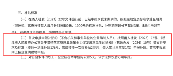 證書到手后,公司行政部門第一時(shí)間行動(dòng)起來(lái)。依據(jù)寧波市人力資源和社會(huì)保障局關(guān)于提升人才技能補(bǔ)貼的相關(guān)要求,以及《慈溪市人民政府辦公室關(guān)于貫徹落實(shí)穩(wěn)就業(yè)政策全力促發(fā)展惠民生的通知》(慈政辦發(fā)〔2024〕10號(hào))文件中明確的標(biāo)準(zhǔn)——技師可享受1萬(wàn)元一次性補(bǔ)貼、高級(jí)技師可享受2萬(wàn)元一次性補(bǔ)貼,行政同事積極協(xié)助何保國(guó)整理申請(qǐng)材料,精準(zhǔn)核對(duì)文件要求,高效完成了補(bǔ)貼申請(qǐng)的遞交工作。