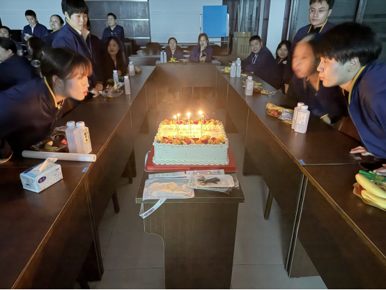 為了給壽星們打造專屬的浪漫與驚喜,人資的小伙伴們提前忙碌起來。桌上整齊擺放著新鮮飽滿的水果、琳瑯滿目的零食、晶瑩剔透的飲料,還有那點綴著奶油與鮮果的生日蛋糕,每一處細節(jié)都藏著滿滿的心意。當壽星們走進布置一新的會場時,眼中的驚喜與笑意,便是對這份用心最好的回應。